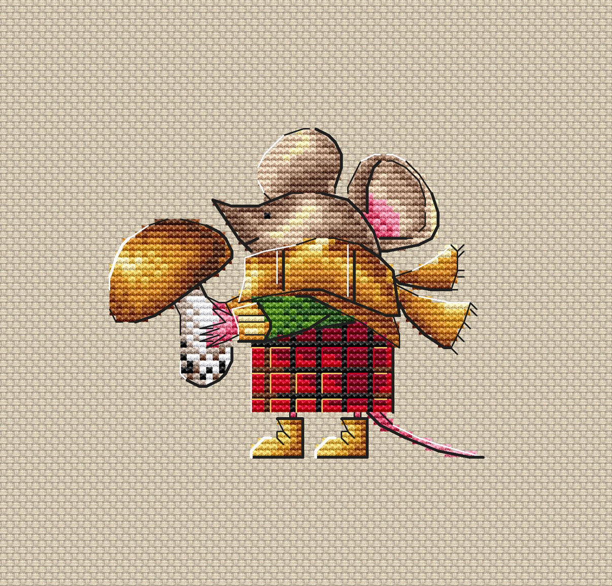 Mouse and White Mushroom - PDF Cross Stitch Pattern