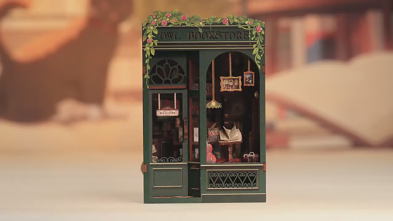 Miniature Wizardi Roombox Kit - Owl Bookstore Dollhouse Kit