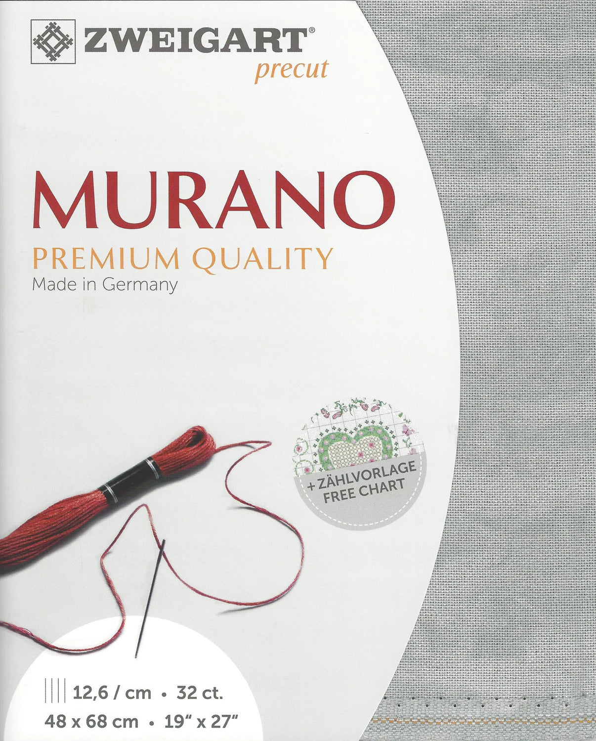 Zweigart Murano Vintage Canvas 32 count, 52% Cotton, 48% Viscose. Dimensions 48*68 cm/ 18.9*26.77 in