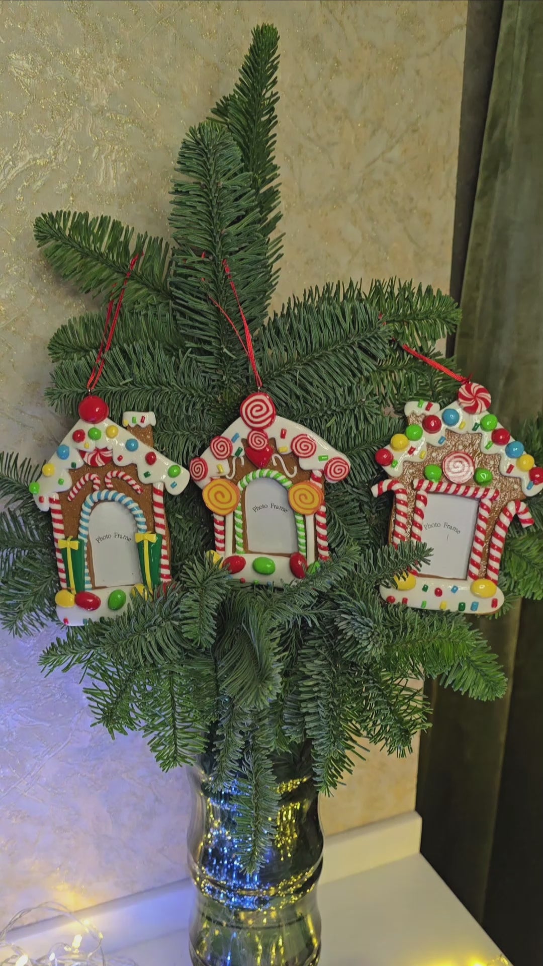 Christmas Ornament - Glossy Gingerbread Gingerbread House Frame. Wizardi Festive Decoration F07-N2-8-SEE200A