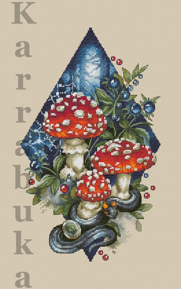 Ideal for modern stitchers looking to break away from traditional motifs, Karrabuka’s patterns offer fresh takes on themes like fantasy, seasons, and everyday emotions. Her color choices are rich and often unexpected, creating visually striking pieces that are as fun to stitch as they are to display.