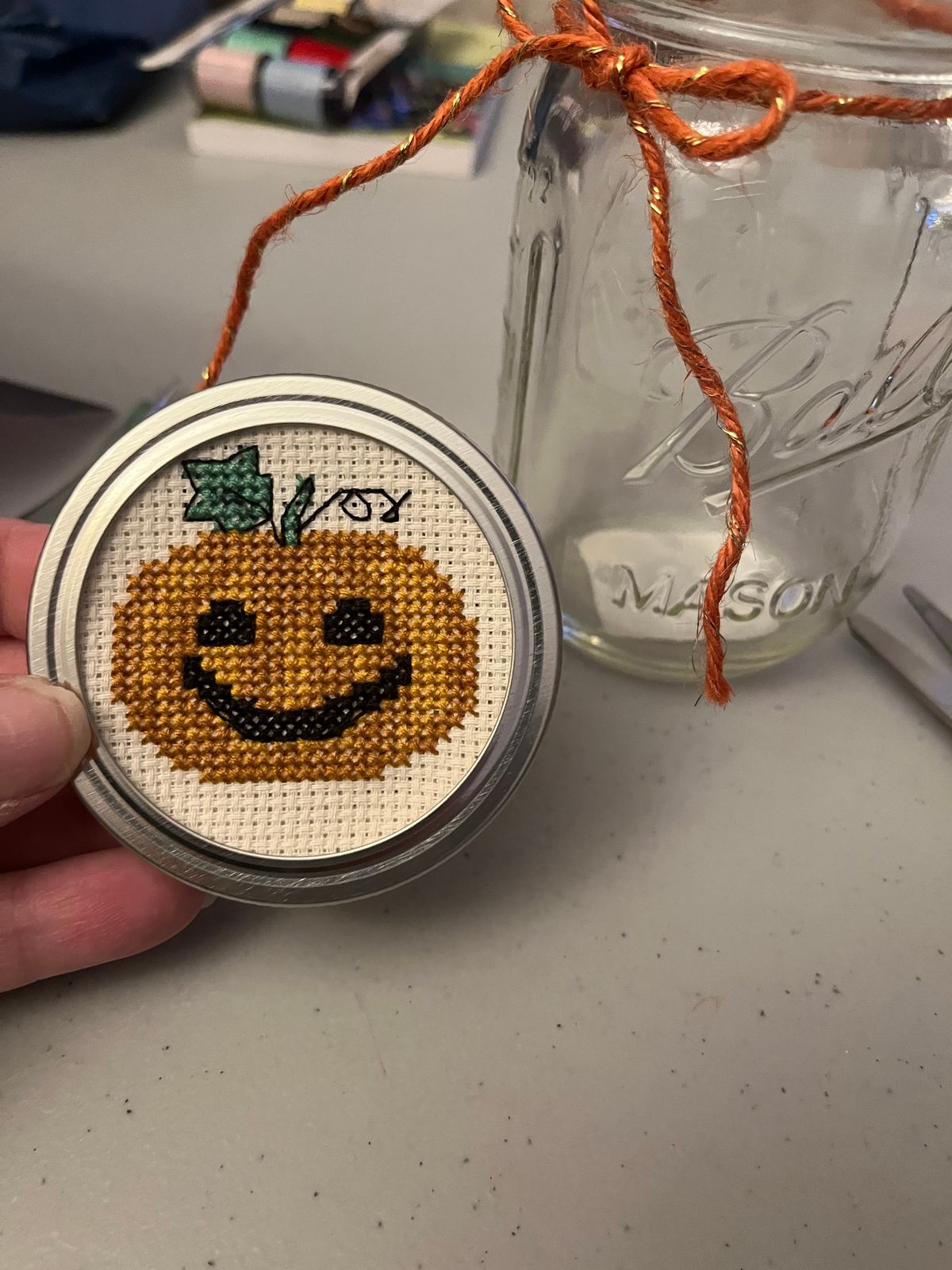 Great pattern. Stitched it for a jar lid. Really cute.