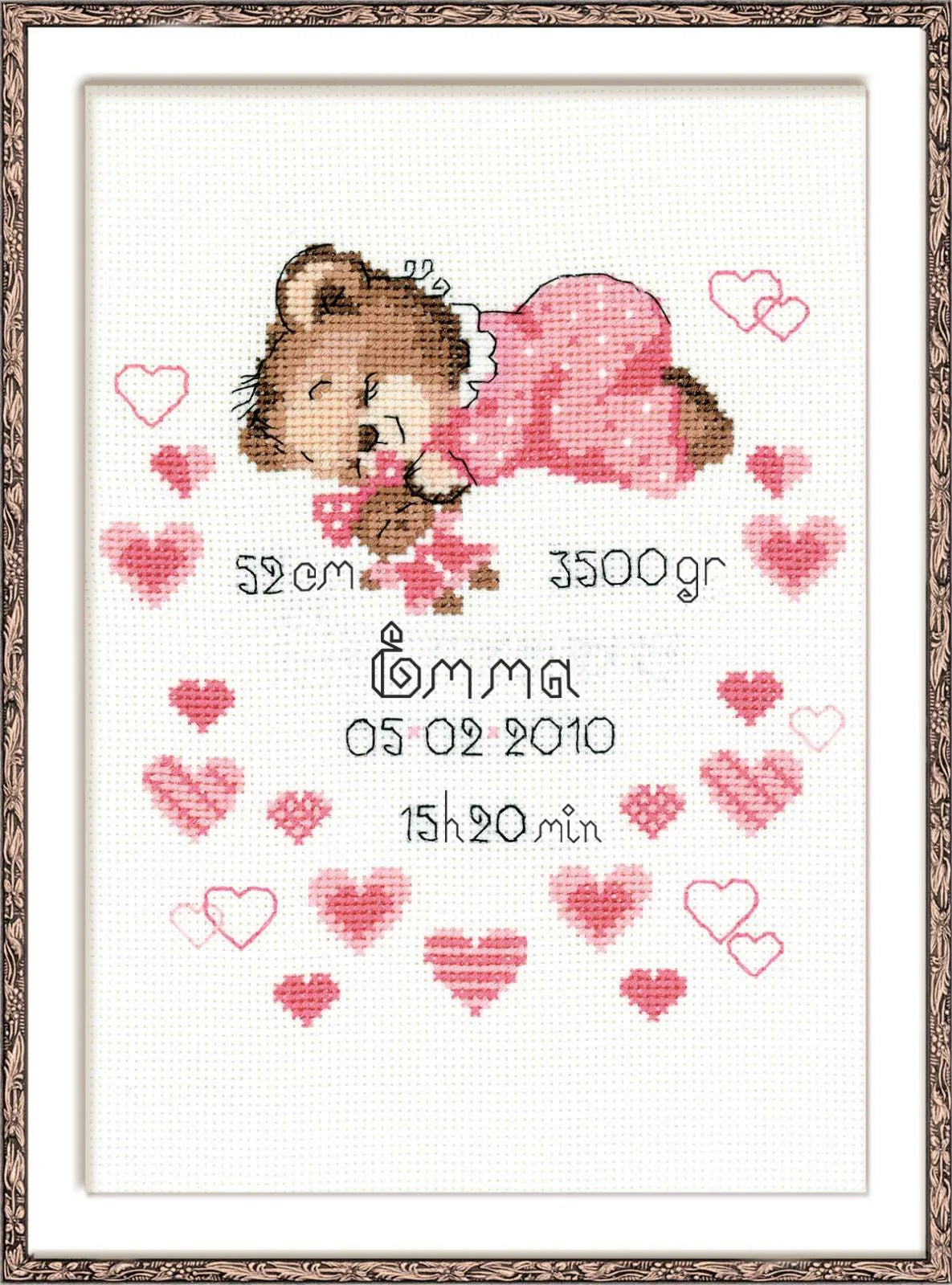Girls Birth Announcement R1123 Counted Cross Stitch Kit