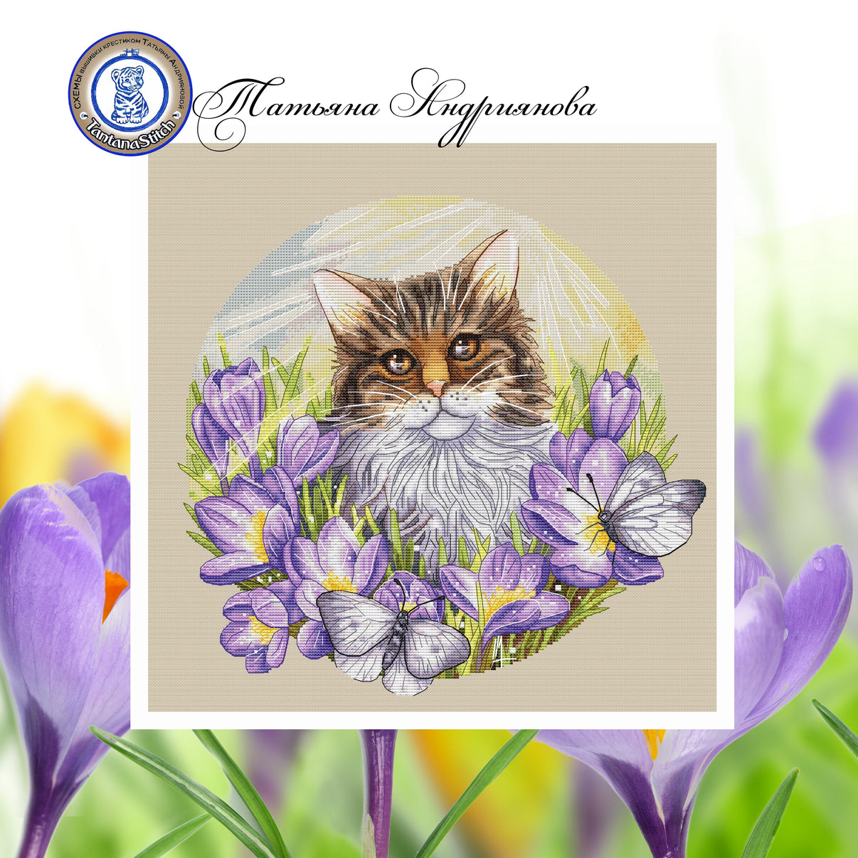 A Cat in Crocuses - PDF Cross Stitch Pattern