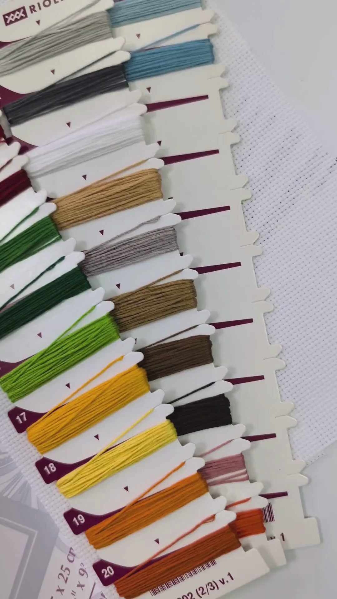 Kit contains: Canvas Zweigart 14ct. white AIDA, treads: Anchor stranded cotton 22 colors. Instruction, color chart, needle 1 type. Dimensions 25*25cm/9¾" x 9¾"inches.