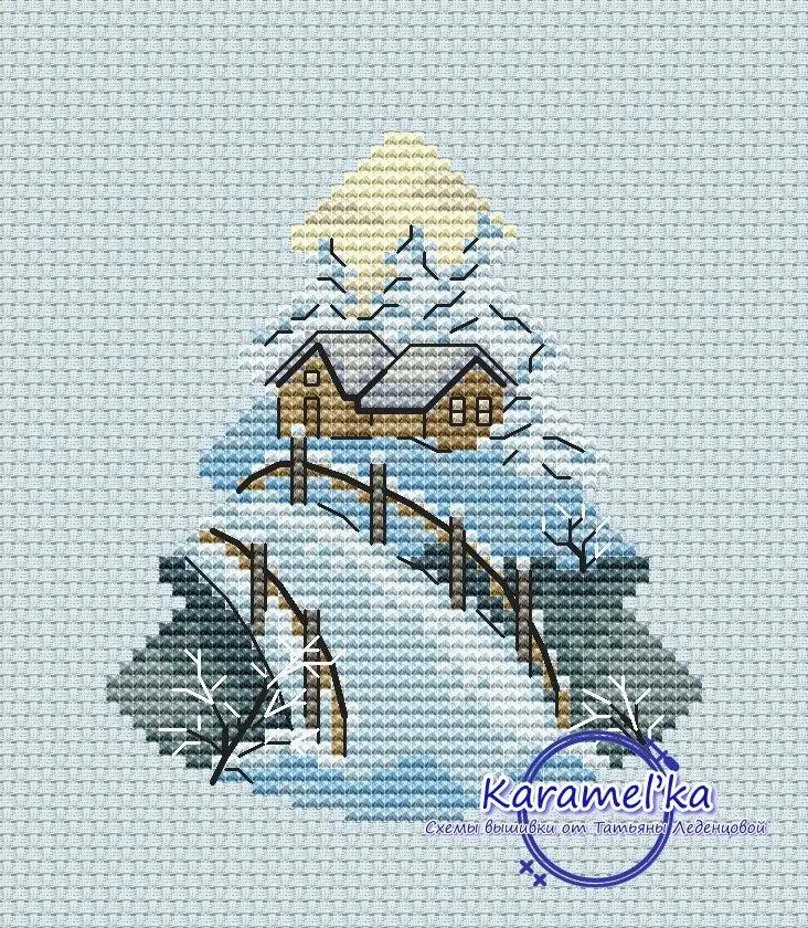 Houses behind the bridge - PDF Cross Stitch Pattern