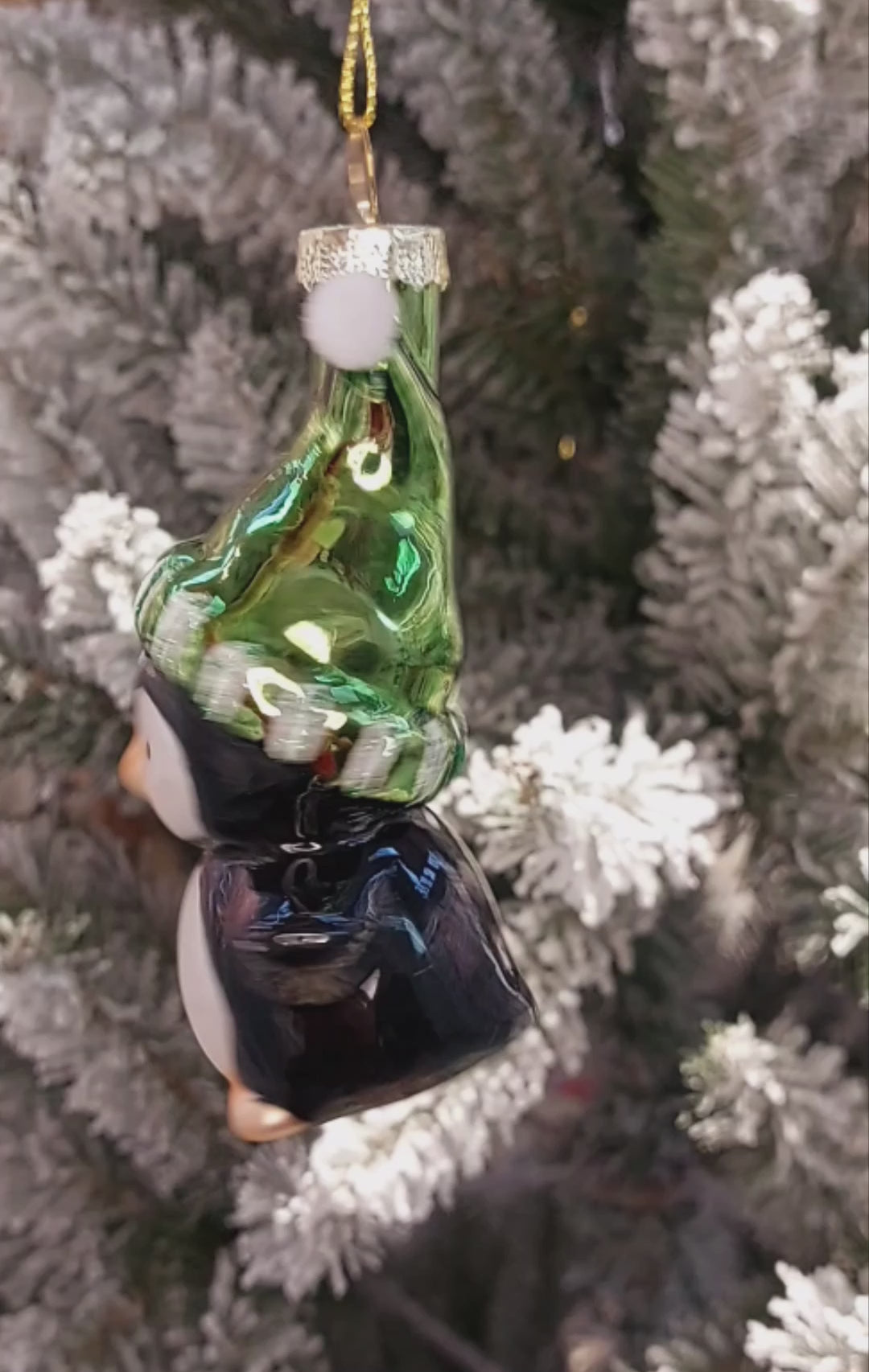 Christmas Glass Ornament - Penguin with Hat by Wizardi F07M3-32 HB-SY25361