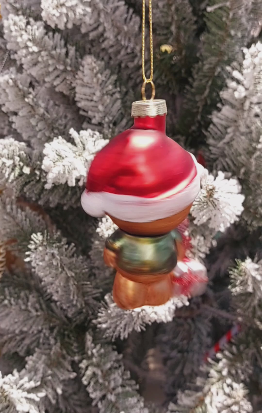 Christmas Glass Ornament - Teddy Bear with Gift by Wizardi F07M3-14 HB-SY25084