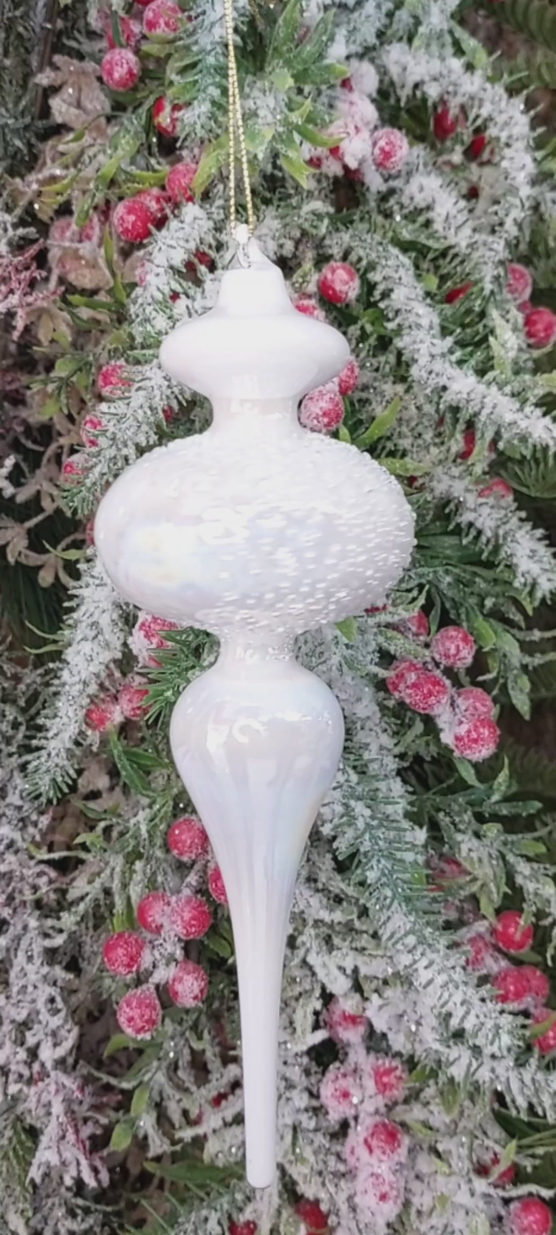 Iridescent White Spire Christmas Glass Ornament Wizardi F07M10-5