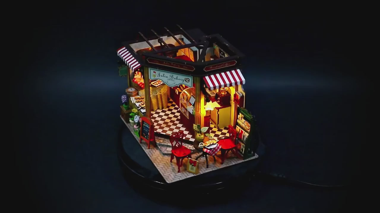 Julie Bakery Dollhouse Kit - Miniature Wizardi Roombox Kit with LED Light F07M51-85-M2422