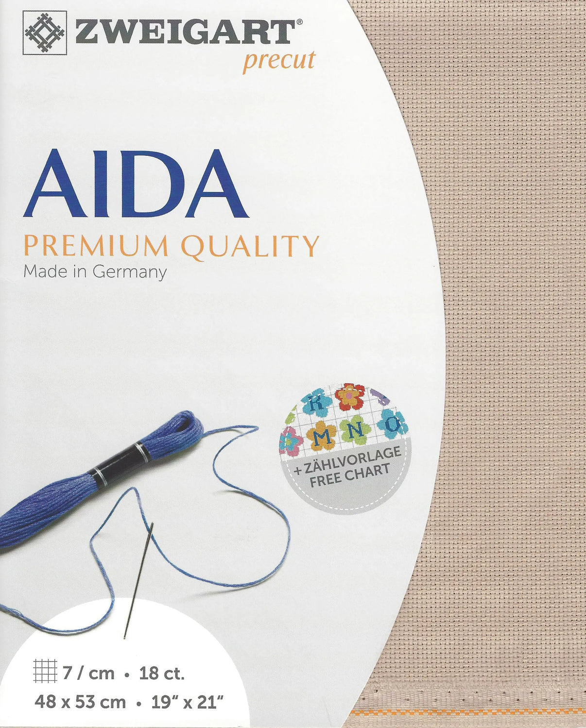 Zweigart Fein-Aida Canvas 18 count, 100% Cotton. Dimensions 48*53 cm/ 18.9*20.87in