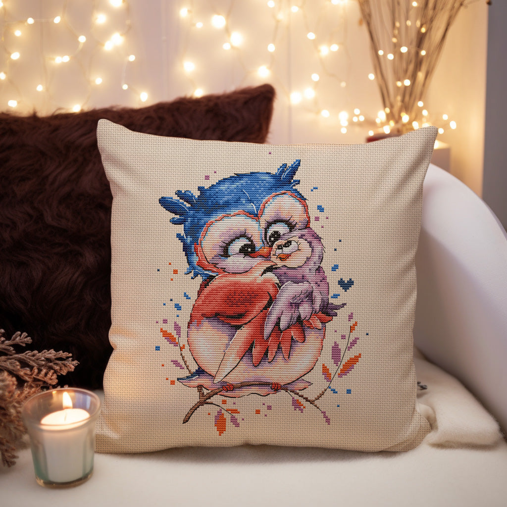 This heartwarming cross-stitch pattern features two adorable owls sharing a tender hug, perched on a delicate branch surrounded by soft leaves. With its vibrant watercolor inspired design, it captures the sweetness of love and family in every stitch. Perfect for owl lovers and anyone looking to create a cozy, nature-inspired project full of warmth and charm!